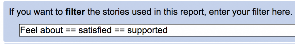 In this example, only stories for which the question “Feel about” was answered “satisfied” or “supported” will be included.